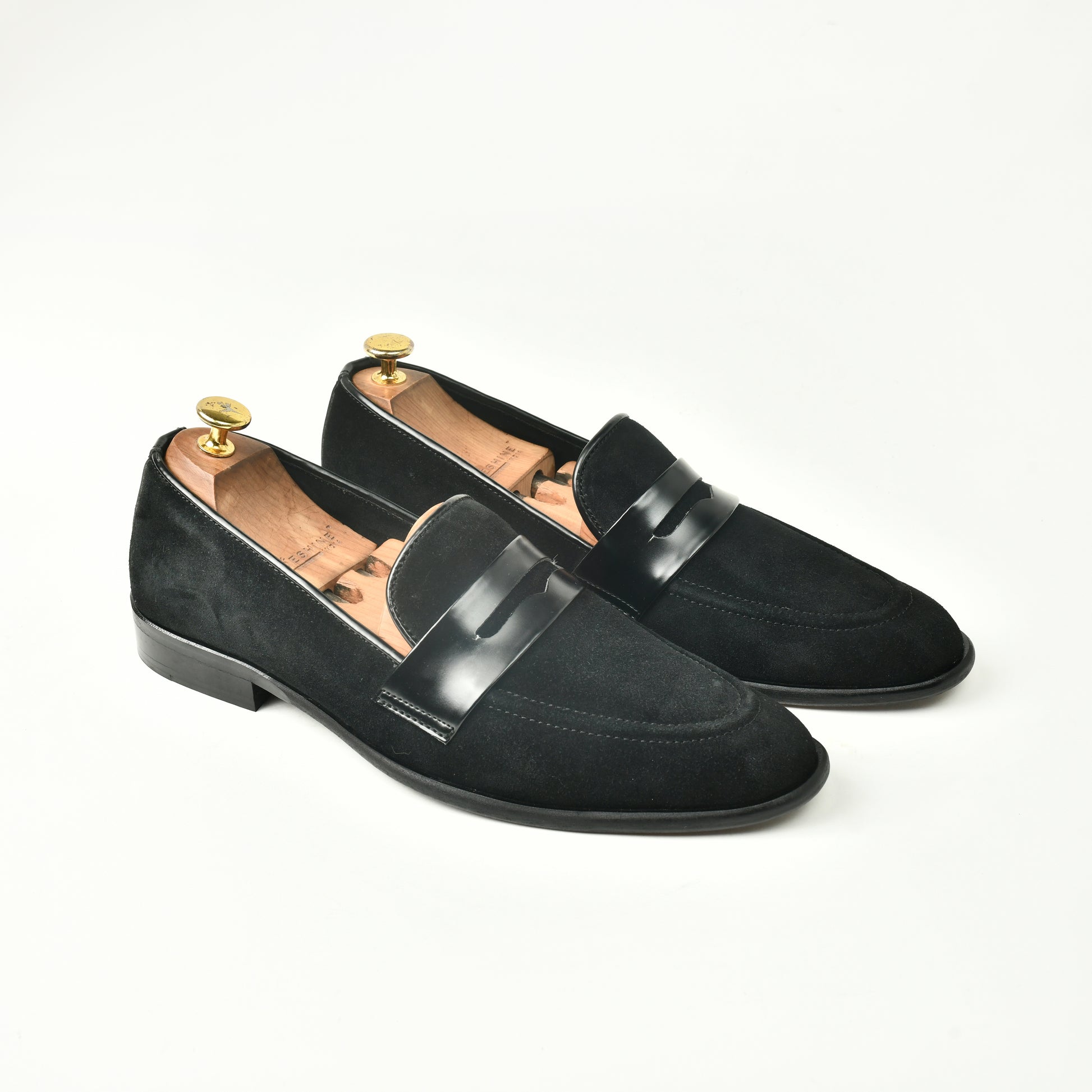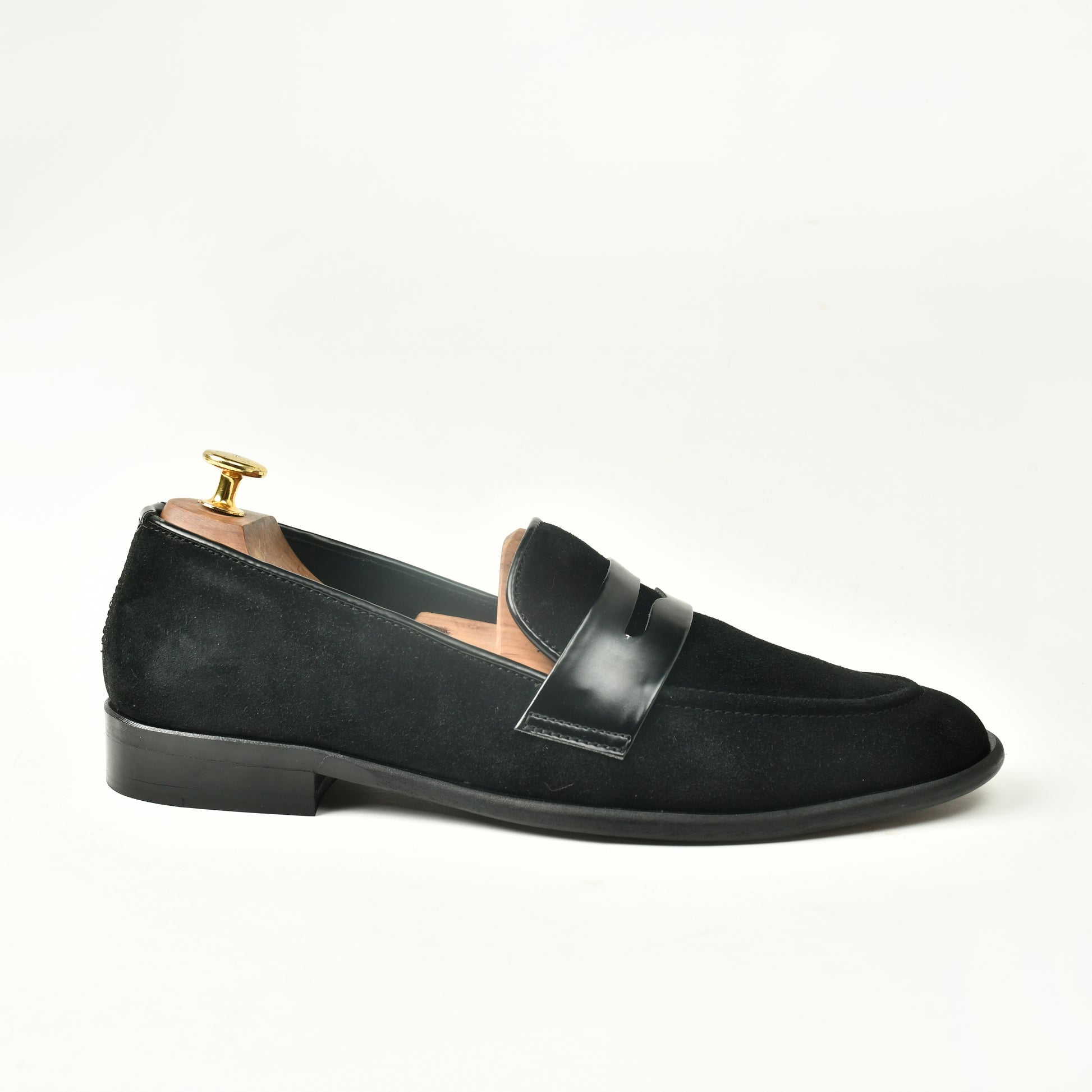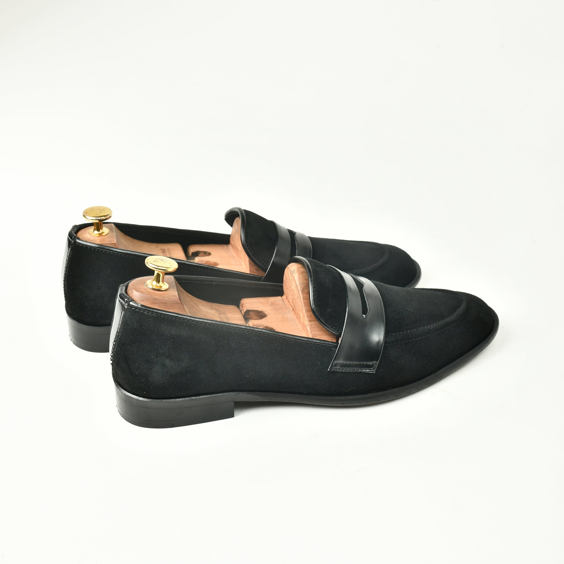 Suede Slip Ons with Saddle - Black