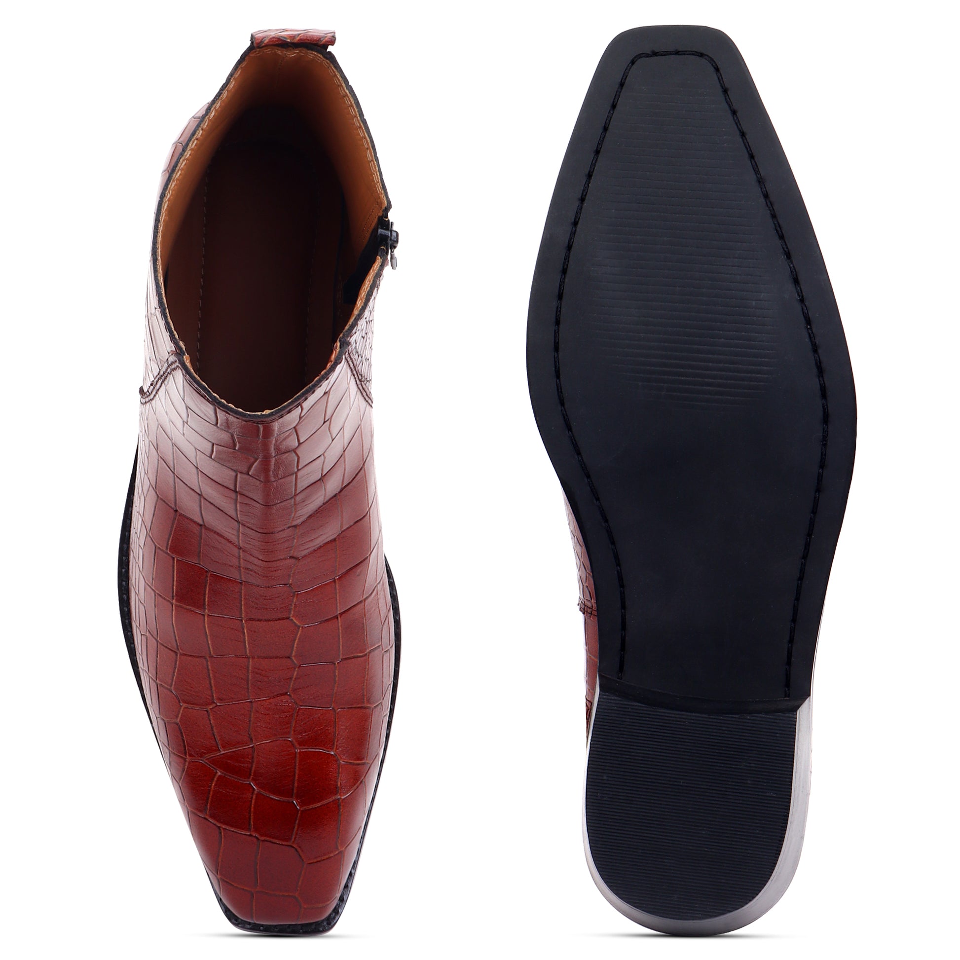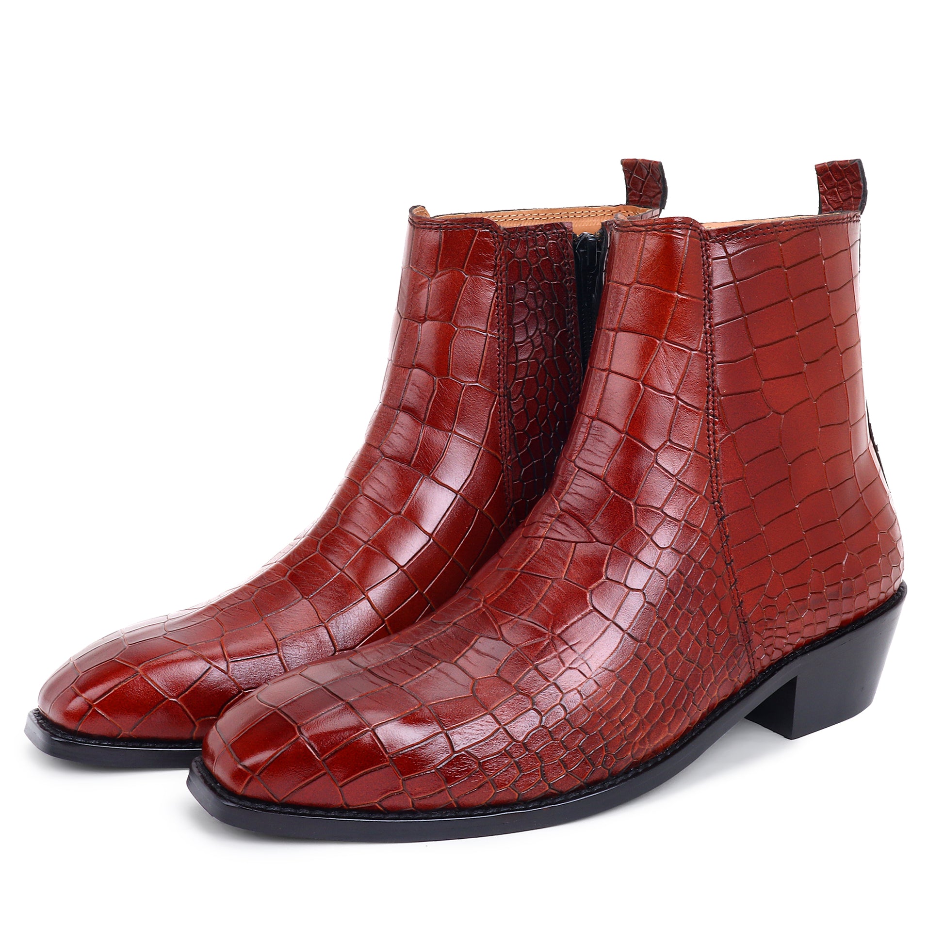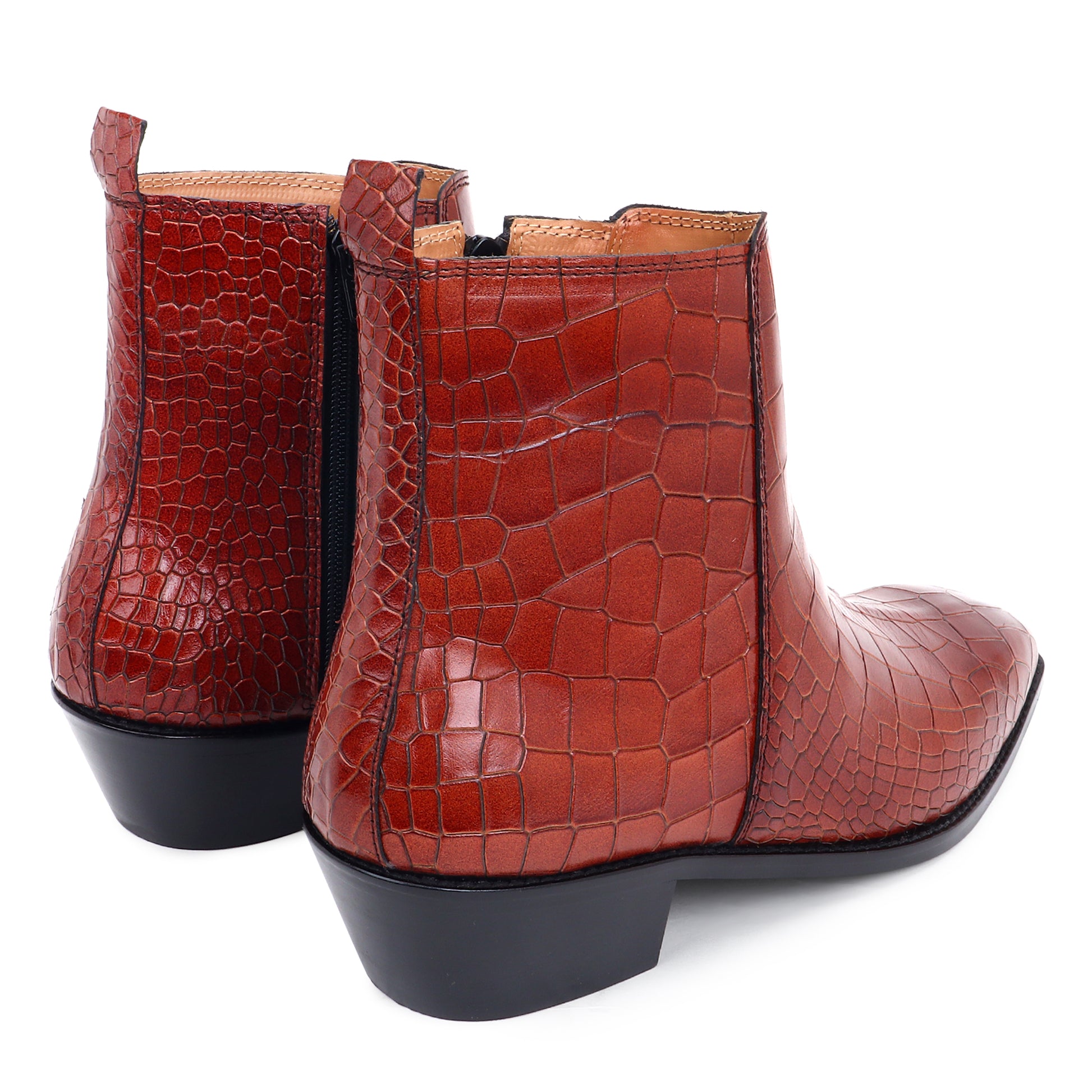 Italian Croco Leather Boots ( Tan ) - Square Toe