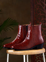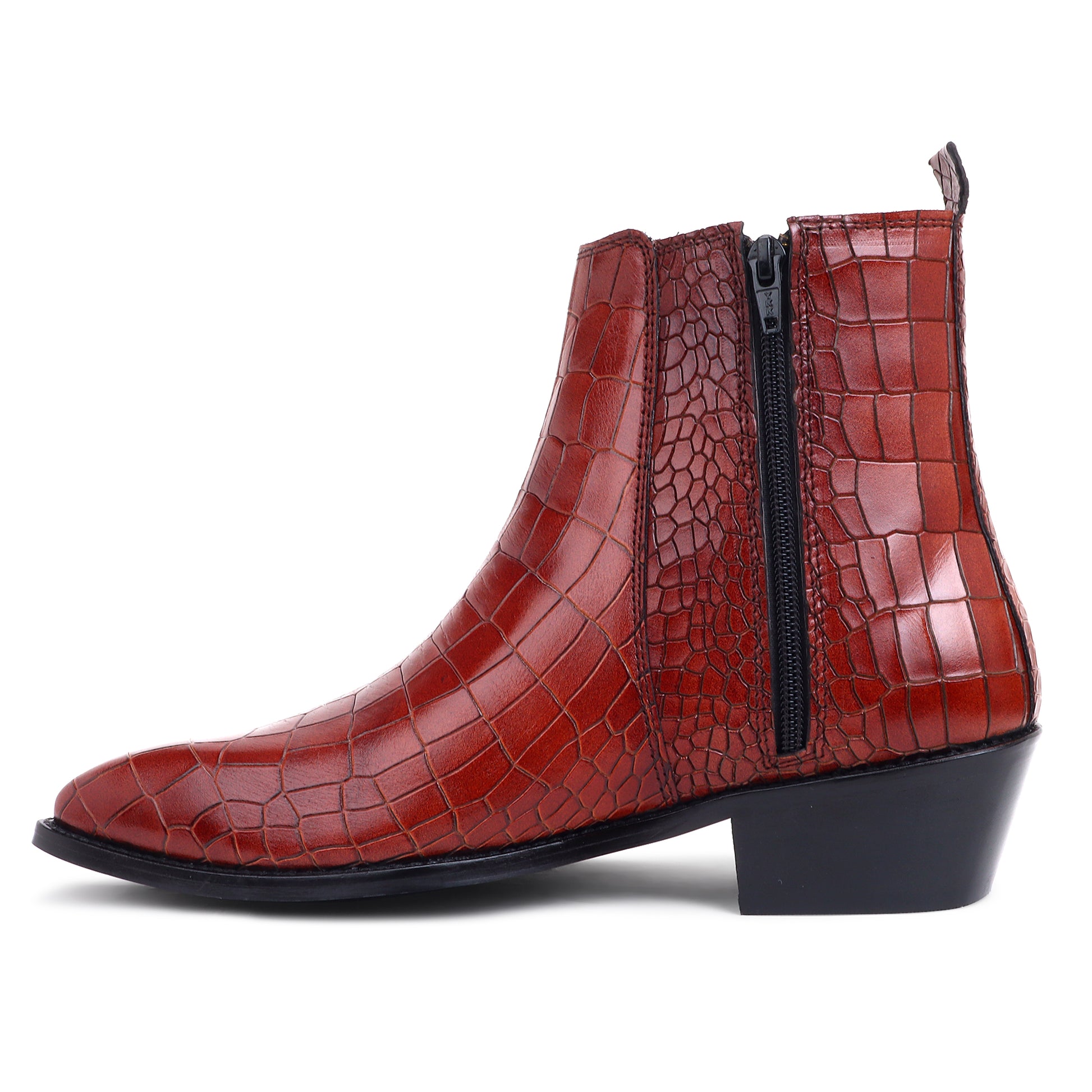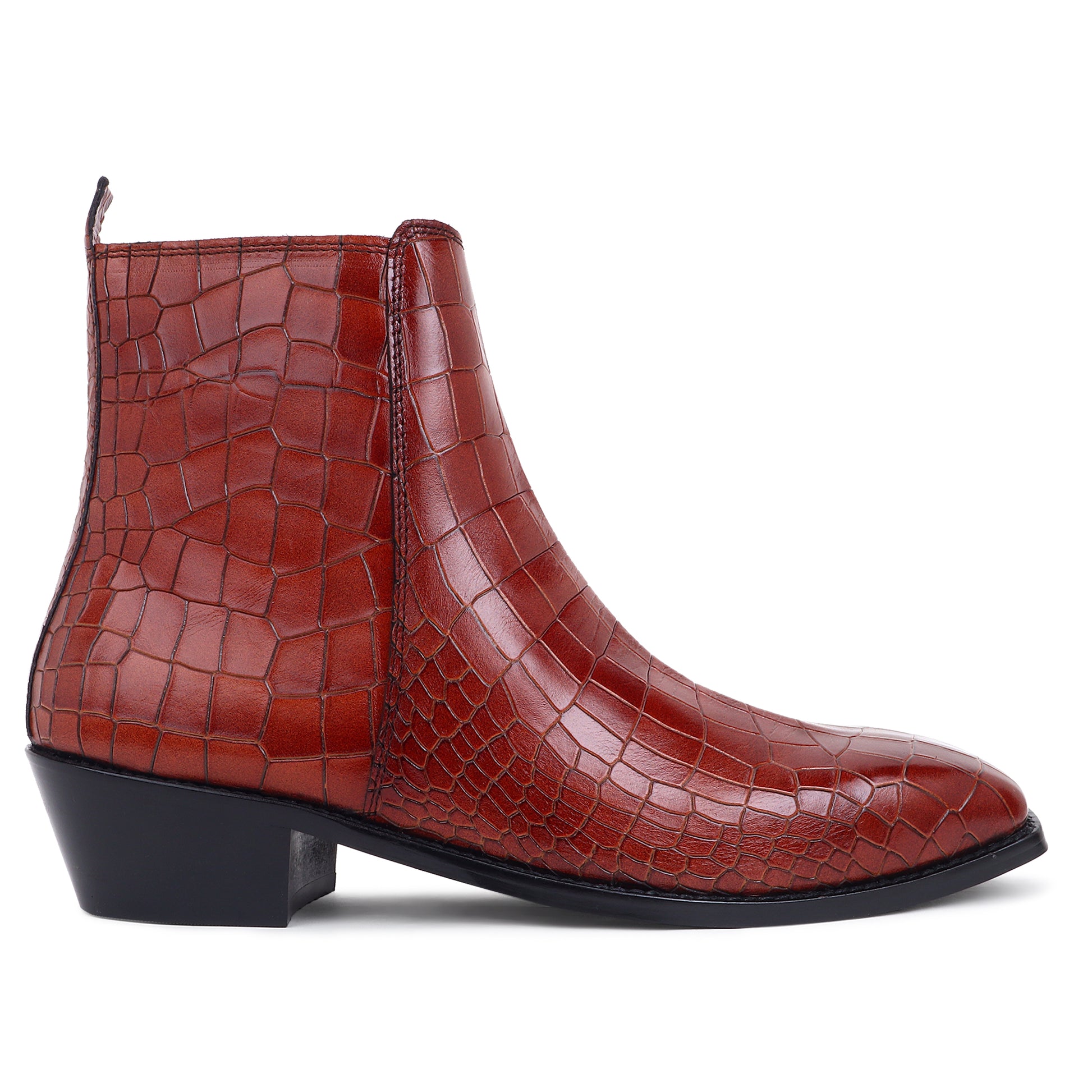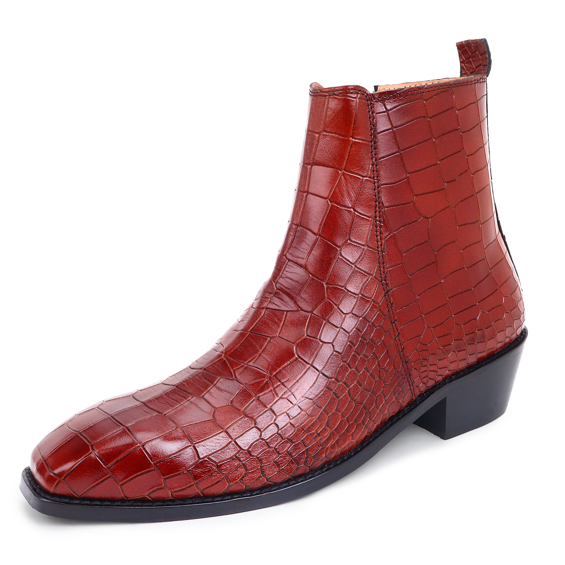 Italian Croco Leather Boots ( Tan ) - Square Toe