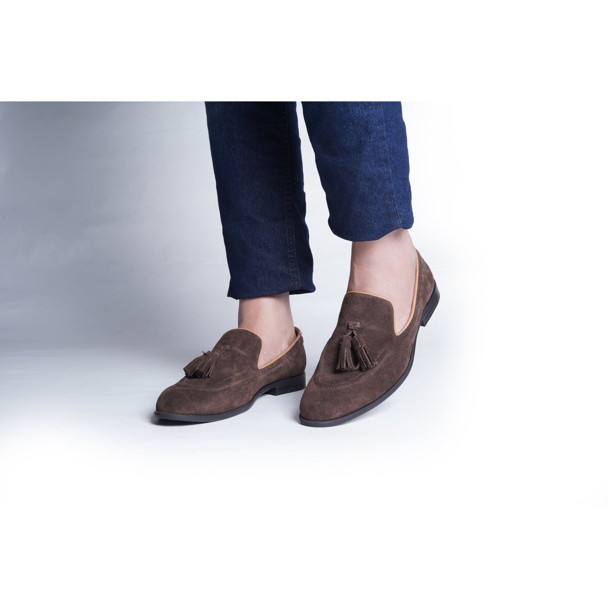 SUEDE SLIP ONS WITH TASSELS - BROWN